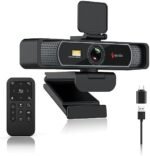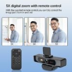 Angetube Webcam 4K – 5X Zoomable Webcam with Remote and Noise-Canceling Mics, Auto Light Correction, Wide Field of View, USB Computer Web Camera Work with MS Teams, Zoom, Google Meet, PC/Mac/Laptop
