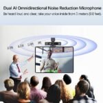 【Dual Noise Cancellation Microphones】 The 4K webcam for pc features dual omnidirectional noise cancellation microphones that pick up your voice within 3 meters (9.8ft) and automatically filter out background noise. Enjoy clear and hassle-free communication, even in noisy surroundings.