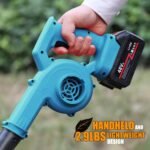 ????ULTRA LIGHT AND PORTABLE HANDHELD: The ultra-lightweight leaf blower weighs only 2.9 pounds, making it easy for even a woman to hold with one hand. Non-slip design handle features an ergonomic body, whether it’s a camp fire, lawn care, leaves on the roof, blowing out water or garage dust, etc., it comes in handy.