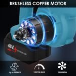 ????CORDLESS DESIGN WITH 2 PACK 48V BATTERIES: The electric leaf blower is equipped with 2 sets of 48V 6000mAh removable rechargeable lithium batteries. Compared to other batteries, the 48V batteries are absolutely stunning in terms of power and battery life, so you don’t have to worry about your cleaning work being interrupted in the middle of the day, providing you with an efficient and convenient experience.