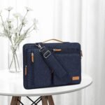 MOSISO 360 Protective Laptop Shoulder Bag,14 inch Computer Bag Compatible with MacBook Air 15 inch M3 A3114 M2 A2941/Pro A1990 A1707,Side Open Messenger Bag with 4 Zipper Pockets&Handle, Navy Blue