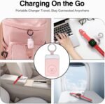 Portable Wireless Charger Compatible for Apple Watch Series 9/8/UItra/7/6/5/4/3/2/SE, 1500mAh Portable iWatch Charger Travel, Magnetic Portable Watch Charger Keychain with USB C (Pink)